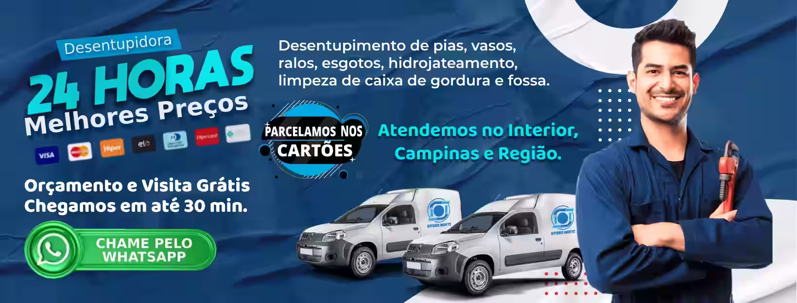 Entendendo a urgência que muitas situações de entupimento requerem, a Desentupidora Hydro Norte no Interior, Campinas e Região oferece atendimento 24 horas por dia, todos os dias da semana, inclusive aos feriados. Nossa equipe está sempre pronta para atender emergências com agilidade. Ligue agora: (19) 99787-1988.