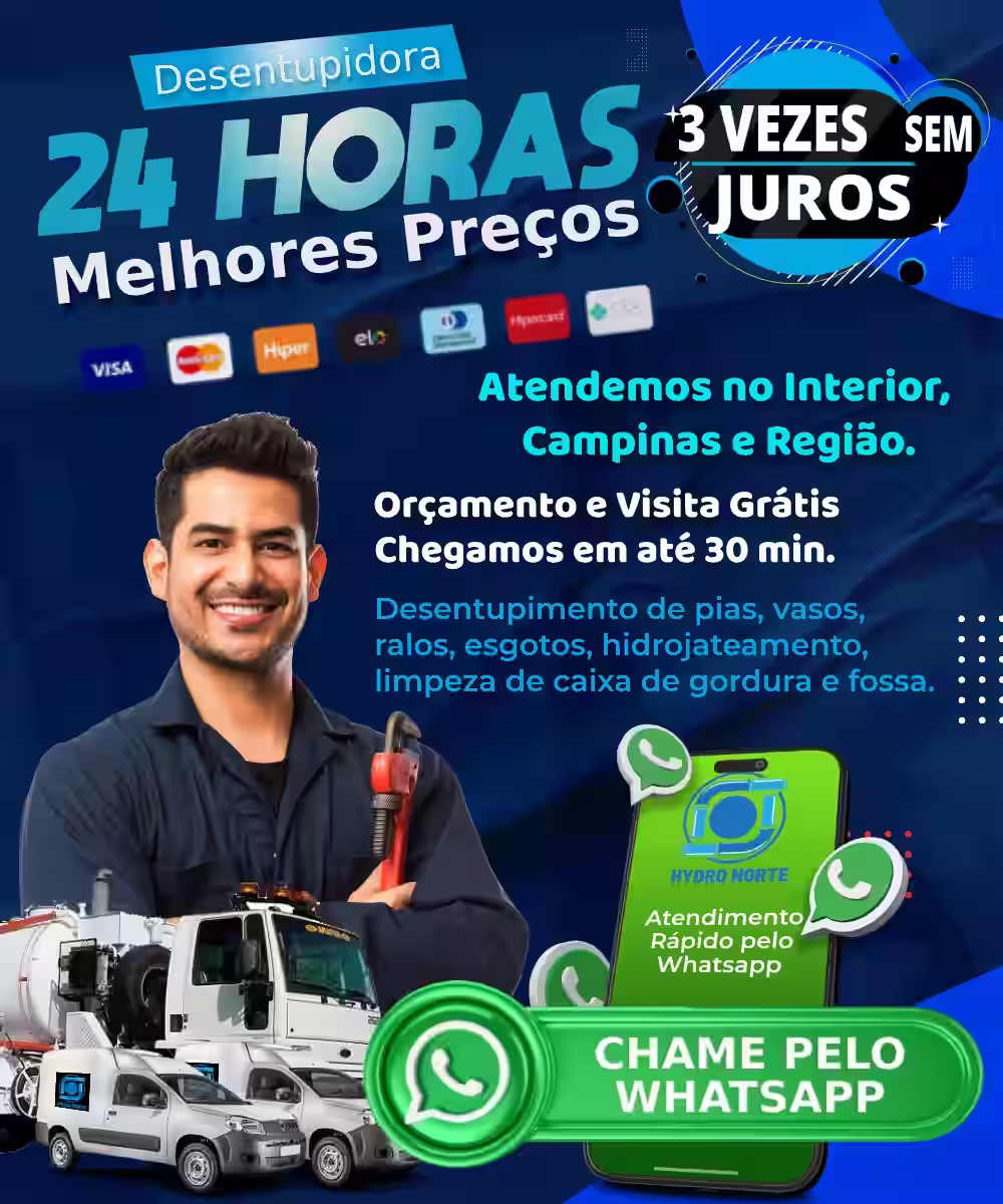 Fale Conosco pelo WhatsApp Ligue Agora: (19) 99787-1988Em uma cidade como Interior, Campinas e Região, é essencial contar com serviços especializados que garantam o funcionamento adequado das instalações hidráulicas. A Desentupidora Hydro Norte no Interior, Campinas e Região se destaca como a parceira indispensável para resolver problemas de entupimento e garantir o bom funcionamento de sistemas de esgoto, fossas, ralos e tubulações.